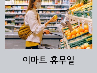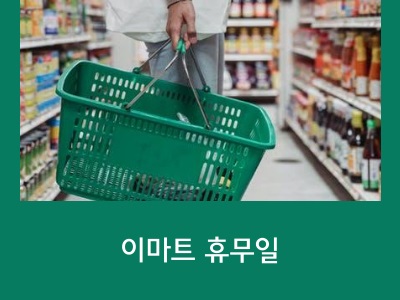 얼마 전 이마트에 장 보러 갔다가 문이 닫혀 있어서 집으로 다시 돌아왔습니다. 저번에는 홈플러스에서 그런 일을 겪었는데 이번에는 이마트에서 이런 일을 두 번이나 겪어 여러분들에게 이마트 2월 휴무일을 알려드리려고 합니다. 지점과 지역마다 휴무일이 다르기 때문에 본인이 거주하고 있는 지역을 위주로 확인해 주시면 됩니다. 대부분 일요일을 휴무일로 지정을 해놓지만 수요일이나 금요일 등 휴무일이 평일인 지점도 있습니다.