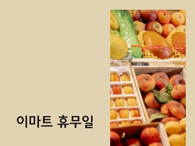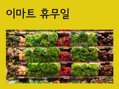 이렇게 각 지역마다 위치하고 있는 이마트 2월 휴무일을 살펴보았습니다. 대체적으로 둘째 주와 넷째 주 일요일을 휴무일로 지정해 놓았지만 몇몇의 지역과 지점들은 수요일이나 금요일을 휴무일로 지정해 놓았기 때문에 본인이 거주하고 있는 지역의 지점을 잘 살펴보시길 바랍니다.